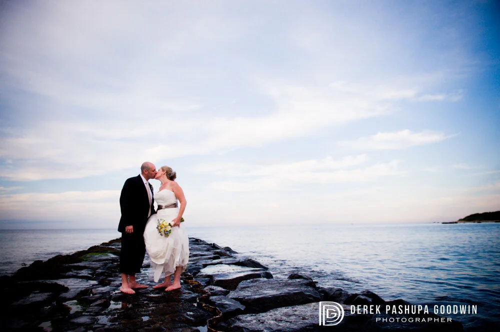 The ceremony & reception were held at the 1661 Inn. It was a cozy place, perfect for the size of the weddings. It was also close enough to the beach and the ocean to make for some nice backgrounds. Kara & Tom took me to a lighthouse, some cliffs, and a beach for the bride & groom portraits. As the sun descended on the horizon we all got our feet wet in the ocean and on the pier where we captures some of my favorite photographs from the day.